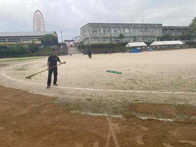 昨日の雨でグラウンド状態等心配していましたが、早朝から職員でグラウンド整備や準備を進め、無事に運動会が開催できそうです。まだ曇り空ですが、予報によるとこの後天候は回復するということです。みどりっこの元気で雲を吹き飛ばして素晴らしい運動会ができますことを願います。保護者のみなさま、地域のみなさま、みどりっこにたくさんのご声援をよろしくお願いします!