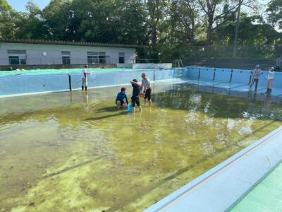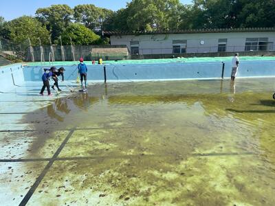 運動会が終わったばかりですが、昨日の放課後職員作業でプール掃除を行いました。プールサイドの草取りや大量の落ち葉を除去する作業を行いました。来週、高学年が仕上げをしてくれます。子供たちが大好きなプールの季節が目の前に迫ってきています!先生たちの頑張りを受け継いで、来週の高学年の頑張りに期待します!