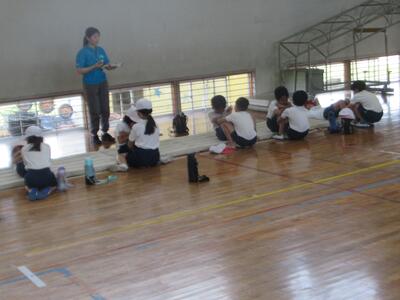 今週は、体力テストが行われています。火曜日に2・5年生、水曜日に1・6年生でした。火曜日は雨だったため、体育館でできる種目のみ行われましたが、水曜日は天気も回復し、運動場の種目も行われました。高学年が低学年のお世話をしながらがんばりました。自分のベストを尽くせたでしょうか?3・4年生は金曜日に実施予定です。