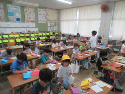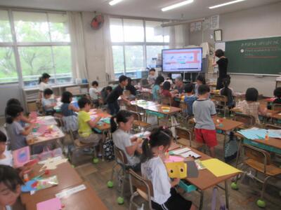 昨日は1年2組の鎌田先生が1日出張でしたので、1年2組はお留守番でした。入学してから3か月がたとうとしている子どもたち、担任の先生がいなくてもほかの先生やお隣のクラスと一緒にしっかり勉強できました。成長を感じます。よくがんばりましたね!