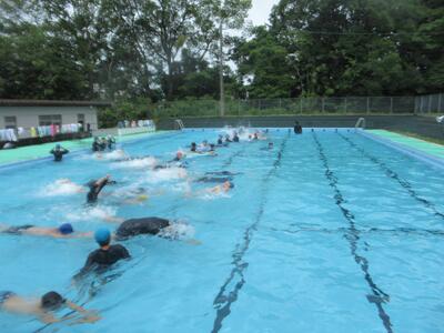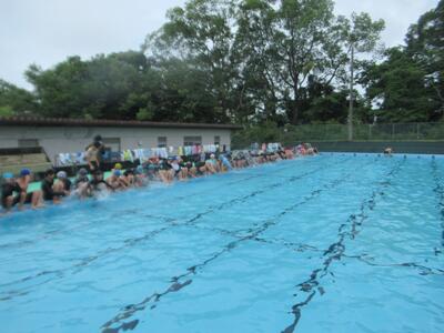 先週の金曜日に6年生のプール開きが行われました。朝から小雨が降り、雷注意報がでていたため5年生は断念しましたが、6年生の時間には大丈夫な状態になりました。運のいい子どもたちでした。蒸し暑い中でのプール開きとなり気持ちよく泳いでいました!