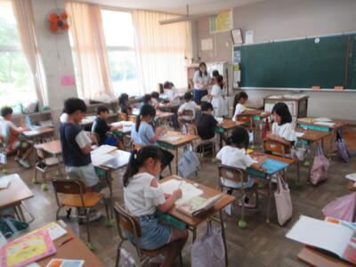 昨日から前期後半がスタートし、今日も朝から暑い中子どもたちはがんばって登校してくれました。昨日の集会でがんばってほしいこととして伝えたあいさつですが、今朝はいつもより元気な声であいさつしてくれる子どもが多かったように感じました。早速授業が始まっています。しっかりがんばる緑っ子です!一部ですが様子を紹介します。