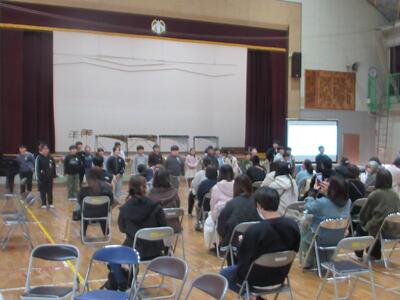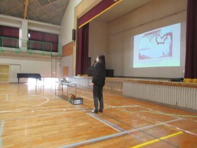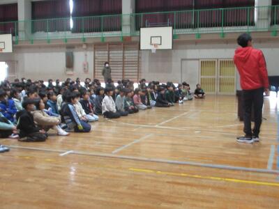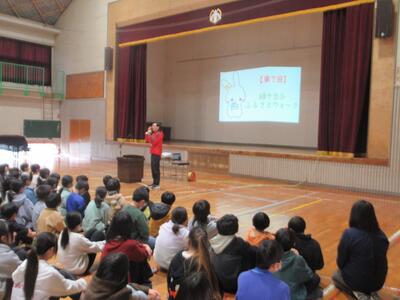 今日のお昼に全校集会を行いました。集会に先立ち、12月に行われたタグラグビー大会の表彰を行いました。集会では、鎌田先生よりふるさとウォークについての説明がありました。ふるさとウォークは2月28日(土)に実施予定です。今年は登校班ではなく、学級ごとに歩く予定となっています。体育館への入場の仕方やお話の聞き方に今年1年間の成長が感じられました。