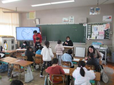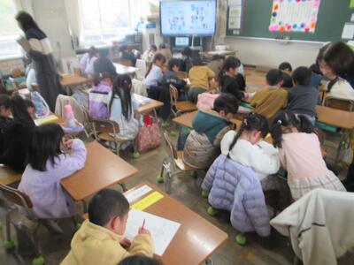昨日の5時間目に新入児体験入学を行いました。お忙しい中ご参加いただいたみなさん、ありがとうございました。あと2ヶ月で入学してくる46名の新入児ですが、インフルエンザ等の影響で8名が参加できず残念でした。参加した子どもたちは元気に1年生と交流ができたようです。1年生はこの日のために準備や練習をがんばり、しっかりとおもてなしをすることができたようです。保護者のみなさまには教頭より入学にあたっての説明を聞いていただいた後、教育委員会の清水様より親の学びプログラムを体験していただきました。入学を前に少しは顔見知りになれたでしょうか?次にお会いするのは4月9日の入学式になります。残りの幼稚園・保育園等の生活をしっかりがんばり、元気に入学してくれるのを心待ちにしています!