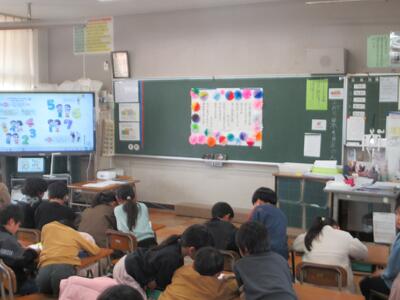 昨日のお昼に児童集会がありました。インフルエンザがまだ油断ならない状況ですので、今回はオンラインで行いました。歯磨きについてクイズを出し、正しい歯磨きの仕方を紹介してくれました。