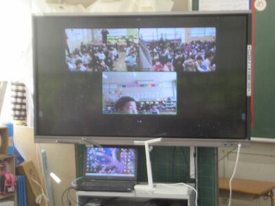 今日の3時間目に、1年生のオンライン交流がありました。今年初めての取り組みで、今までに何度か行ってきたオンライン交流でしたが、本日が最後となりました。新1年生の体験入学を明日に控えた中央小に対して、すでに実施した平井小と緑ケ丘小がアドバイスを送る内容の交流でした。最後の交流を終えて、子どもたちは「楽しかった」「保育園のときの友達に会えてうれしかった」「中央小も楽しい体験入学になってほしい」といった感想が出されました。自分たちの学習したことや学校生活をほかの小学校に紹介したり、ほかの学校の様子を知ったりと楽しいオンライン交流ができたようです!