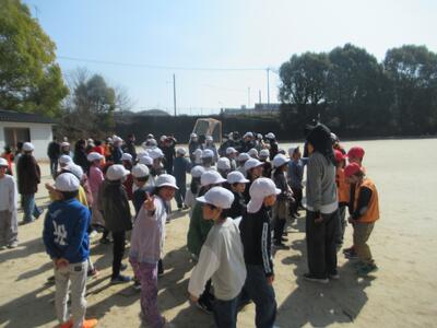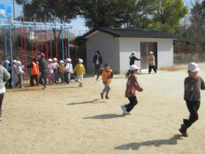 6年生の卒業プロジェクトが始まっています。先週は、昼休みに2年生と鬼ごっこをして楽しみました。一生懸命逃げる2年生ですが、あっという間に牢屋(上り棒のところ)に、タッチされた2年生があふれていました。中には上手に6年生から逃げ切った2年生もおり、「捕まらんだったよ~」と笑顔で話しかけてくれました。卒業まで30日を切っています。下級生との楽しい思い出作りは続きます。