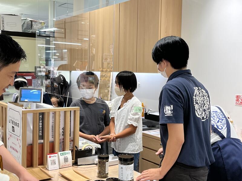 例年は学校で保護者の方々に講師になってもらい行っていましたが、今年はゆめタウンシティモールとコラボし、ゆめタウンのテナントでもお仕事体験をすることができました。