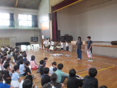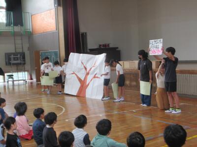 昨日のお昼に全校集会がありました。昨日の集会は、運営委員会からふわふわの木の取り組みについての説明と校長のお話でした。6月は「心のきずなを深める月間」です。ふわふわ言葉をたくさん使って、児童玄関のふわふわの木に花をいっぱい咲かせましょうという運営委員会からの呼びかけに続き、校長からは自分のいじめ体験をもとに緑ケ丘小学校をいじめのない楽しい学校にしようと話しました。みんなの力で、みんな仲良く楽しい学校生活を送れるようにしましょうと呼びかけると力強く「はい!」と答えてくれた子どもたちでした!