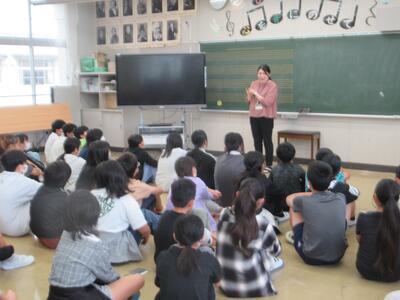3年生が人権学習で「センターてなんね」という学習をしています。その学習の一環として、荒尾市の児童センターと人権啓発センターから坂田さんと西丸さんにお越しいただき、子どもたちからの質問に答えていただきました。子どもたちからの質問の一つ一つに丁寧に答えていただき、子どもたちもだいぶすっきりしたようです。1組の子どもたちたちは、11月に荒尾市の先生たちがたくさん見に来られる公開授業に臨むことになります。今回の出会いをもとにしっかり人権学習に取り組んでほしいものです。なお、児童センターと人権啓発センターには12月に訪問する予定です。