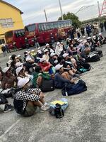 朝早くからたくさんの保護者のみなさんや先生方に見送られて元気に出発しました。全員揃って出発できたのが何よりです。フェリーを降りて、長崎に向かっています。