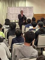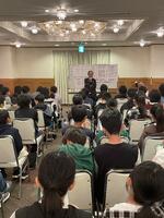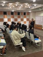 長崎に到着し、早速平和学習がスタートしました。まずは、語り部さんの講話です。田中安次郎さんのお話を聞いています。
