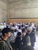 昼食のあと原爆資料館の見学をしたあと、平和集会をしました。厳かな雰囲気の中、練習の成果を出せた集会でした。今、グループごとにフィールドワークをしています。