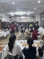 ホテル到着のあと入館式を行い、夕食をいただきました。続けて入浴とバタバタしたスケジュールでしたが、全員入浴まで完了しました。このあと部屋長会議をして就寝となります。昼間歩き回って疲れているはずなので、早く寝て明日のハウステンボスに備えてくれることを願うばかりです。