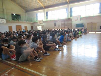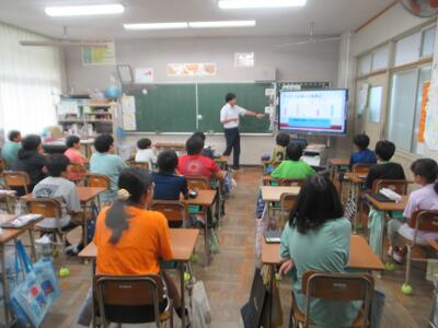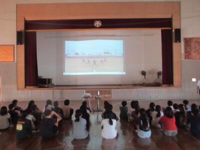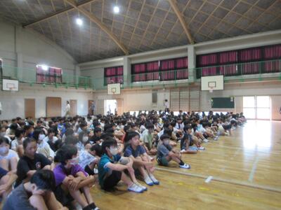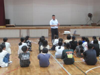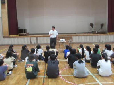 昨日の5時間目、中学校から教頭先生をはじめ3名の先生に来ていただき、6年生にお話をしていただきました。小学校生活も残り半年となり、この半年間をどう過ごして中学校進学に向けて取り組んでいくかを考えてもらうためです。最初に中学校の生活の様子を動画で見せていただき、教頭先生からは「素直な心」で残り半年を過ごし、中学校に入学してほしいというお話をしていただきました。そのあと生徒指導担当の先生から、いやだなと思うことでもがんばるのが中学生、そしてがんばったあとには感動したり、成就感が残ったりするので、残り半年たくさんの経験をしてきてほしいというお話をしていただきました。中学校の先生方のお話にしっかり耳を傾けていた子どもたちです。残り半年、中学校に向けて「もう一歩チャレンジ!」してがんばってほしいと思います。期待しています!