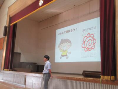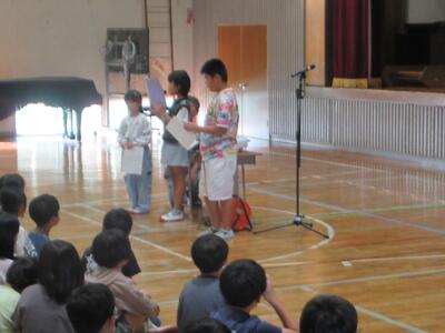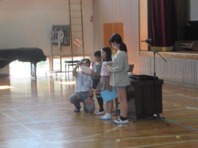 昨日のお昼に児童集会がありました。今回は、放送委員会の発表でした。放送委員会の一日の仕事の流れの説明があり、そのあとに放送にまつわるクイズが出題されました。みんな普段からしっかり放送を聞いているのでしょう。ほとんどの子どもたちが正解でした。発表する方も聞く方もとても立派な態度でした。どんどん成長していくみどりっこです!