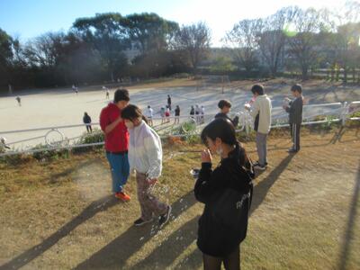 10月に6年生の陸上練習を応援してくれた岱志高校のみなさんが、今度は体育のティーボールの応援に来てくれました。最初にためしのゲームを行い、その後チームごとに練習という流れでしたが、高校生のお兄さんたちが大きな声で応援してくれたり、練習相手になってくれたりとお世話になりました。次回も来てくれるということで、6年生との交流が続きます。岱志高校のみなさん、ありがとうございます!