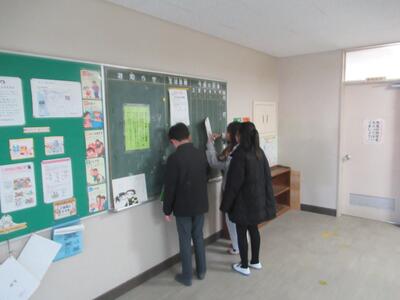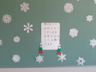 あっという間の冬休みでした。昨日が仕事始めでしたが、今日はたくさんの先生が出勤して明日からの準備をがんばっています。中には黒板にメッセージも見つけました。掲示板がお正月仕様に変えられているところもありました。みどりっこのみなさんは、楽しい思い出ができましたか?明日は寒さに負けず元気に登校してください!