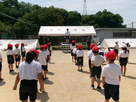 今日は、第1回目の運動会全体練習がおこなわれました。開会式と応援の練習をしました。途中給水タイムを入れ進めていきました。はじめてとは思えないほど、りっぱな態度でした。最後に石拾いをして終わりました。子どもたちは、少し疲れぎみです。たっぷり睡眠をとるように、よろしくお願いします。
