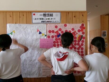本日3校時目は、第3回運動会全体練習でした。開会式、閉会式を、途中止めずに流しました。最後は、赤団、白団の応援合戦をおこないました。とても気合が入っていました。