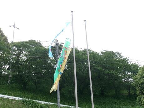 先日、1年生がこいのぼりを作りました。五月の空に、気持ちよさそうに泳いでいます。
