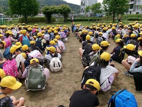 今日は、第1回目の運動会全体練習がおこなわれました。開会式と応援の練習をしました。途中給水タイムを入れ進めていきました。はじめてとは思えないほど、りっぱな態度でした。最後に石拾いをして終わりました。子どもたちは、少し疲れぎみです。たっぷり睡眠をとるように、よろしくお願いします。