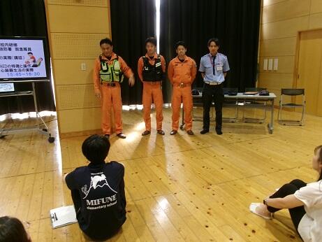本日放課後、心肺蘇生法講習会並びにAED使用講習会がおこなわれました。講師は、上益城消防署救急隊の皆様です。学校職員は毎年、水泳の授業が始まる前、必ず講習を受けます。上益城消防署救急隊の皆様、ありがとうございました。
