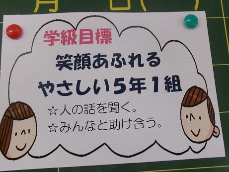 【5年1組:笑顔あふれるやさしい5年1組 ~人の話を聞く・みんなと助け合う~】