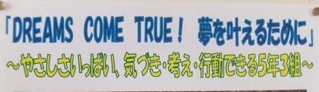 【5年3組:DREAMS COME TRUE! 夢を叶えるために ~やさしさいっぱい、気づき・考え・行動できる5年3組~】