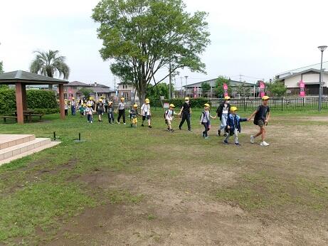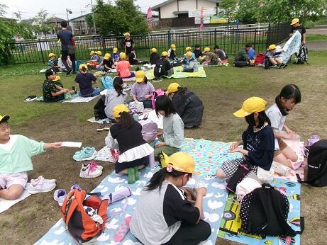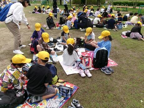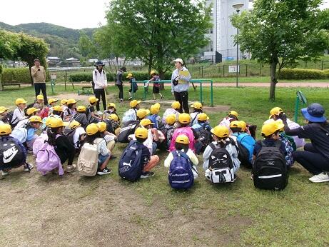 歓迎遠足です。恐竜公園に出かけました。昼食を食べ、自由に遊んだ後、登校班ごとに下校しました。遠足の様子などは子どもさんにお聞きください。