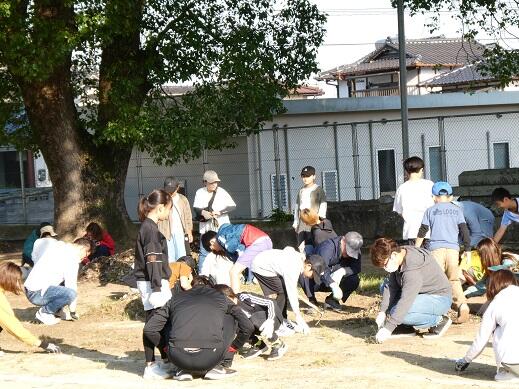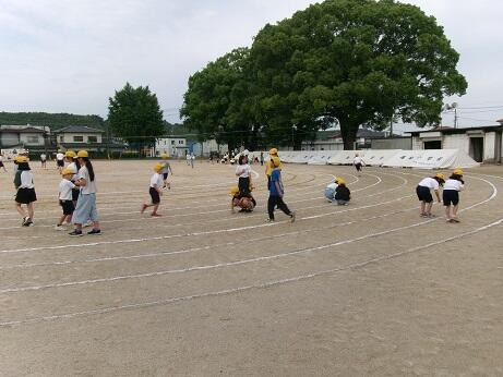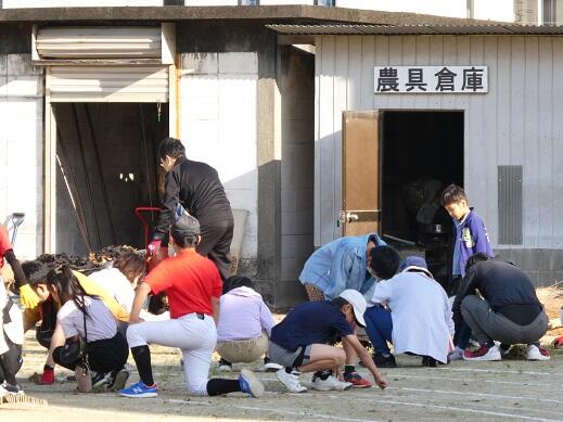 朝から全校児童で、運動場の石拾いをしています。ありがとう!