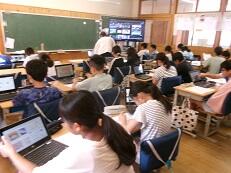 【5年1組は理科でもののとけかたを学習していました。スカイメニューを使って問題にチャレンジしていました。5年3組は算数で、通分を学習していました。】