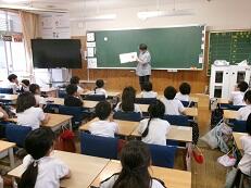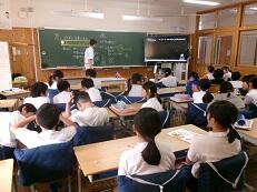 1校時目、1年1組で研究授業がおこなわれました。教科は国語です。単元名は「うみのかくれんぼ」です。本校では国語化計画を進めています。その一つに、職員一人一人の授業の向上を目指しています。本日の授業をもとに、来週9日水曜日、同じところを、1年2組でもう1度研究授業を実施します。本日の授業をふまえ、子どもたちがさらに深く考えることができる授業を構築していきます。職員も日々研鑽に励んでいます。