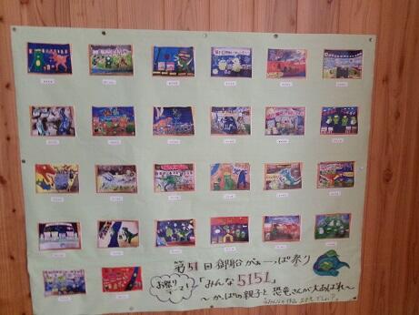 【6年生教室前には、修学旅行の写真やがーっぱ祭りポスターの写真が掲示してあります。】