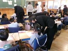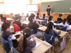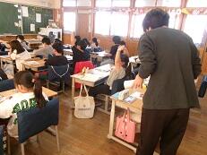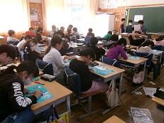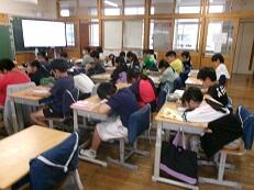 【3年1組は漢字のテストがおこなわれていました。真剣に取り組んでいました。】