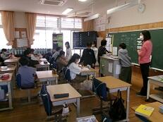 【本日5校時目、6年2組で、上益城郡教科等研究会外国語部会がおこなわれました。稲葉教諭とALTアンジェリカ先生が連携をとり授業が進みました。単元名は「NEW HORIZON ELementary Unit5 (where is it from?)」です。伝え合うということをテーマに、身の回りにあるものを紹介したり、どこの国なのかを聞いたりしました。終始笑顔が絶えない授業でした。6年2組のみなさん、かっこよかったですよ。