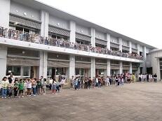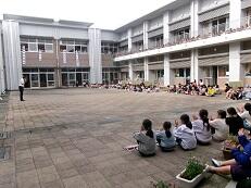【午後3時、予定通り5年生が集団宿泊教室から帰って来ました。体育館横で、解団式を行いました。本来やさしい5年生ですが、それ以上にやさしさがたくさんみえた2日間だったそうです。最後に、バスの運転手さん、出迎えに来られた保護者の皆様にお礼を言って下校しました。5年生のみなさん、ゆっくり休んでください。お疲れさまでした。】