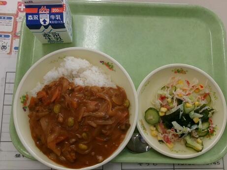 今日の給食:ハヤシライス、海鮮サラダ、牛乳