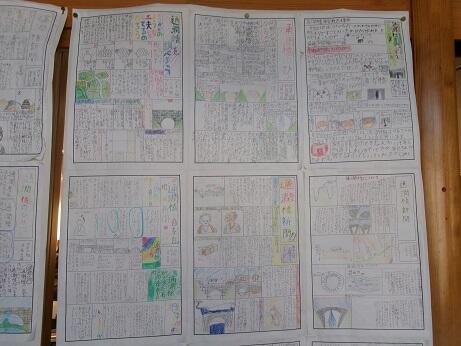 【4年生教室前には「通潤橋新聞」が掲示してありました。とても詳しく書いてありました。】