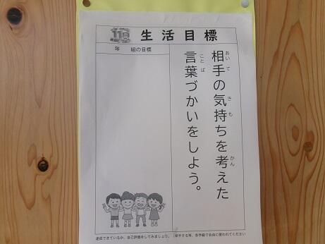 【6年生教室前には「つなぐ未来へのバトン」が掲示してありました。大切な言葉ですね。】