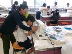 【現在、5年生の家庭科はミシンです。担任1人ではなかなか手が足りません。そこで、保護者、地域の方々にお願いし、ミシンボランティアとして、手伝っていただいてもらっています。ありがとうございます。】
