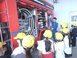 【3年生は、2~4校時を使って、上益城消防組合消防本部に見学に行きました。子どもたちに感想を聞いたところ、「赤い消防自動車がかっこよかった」などと答えてくれました。消防本部の皆様お世話になりました。】