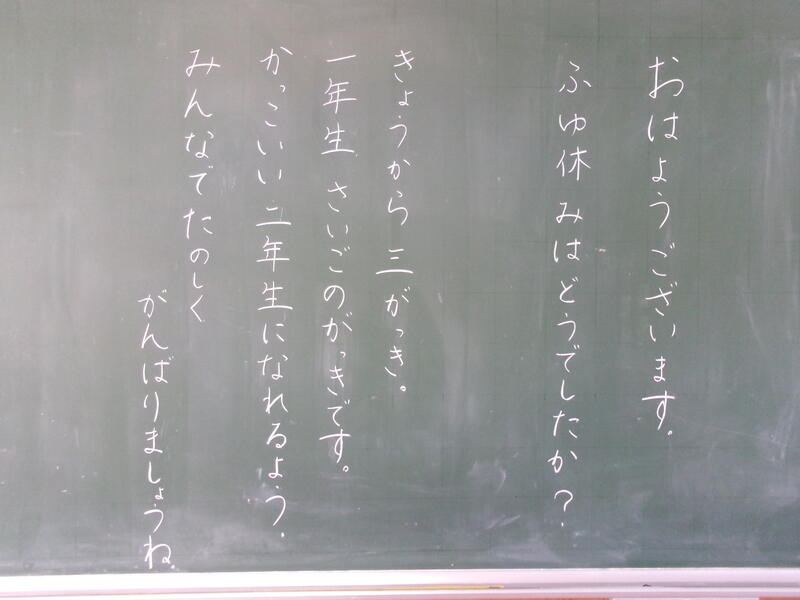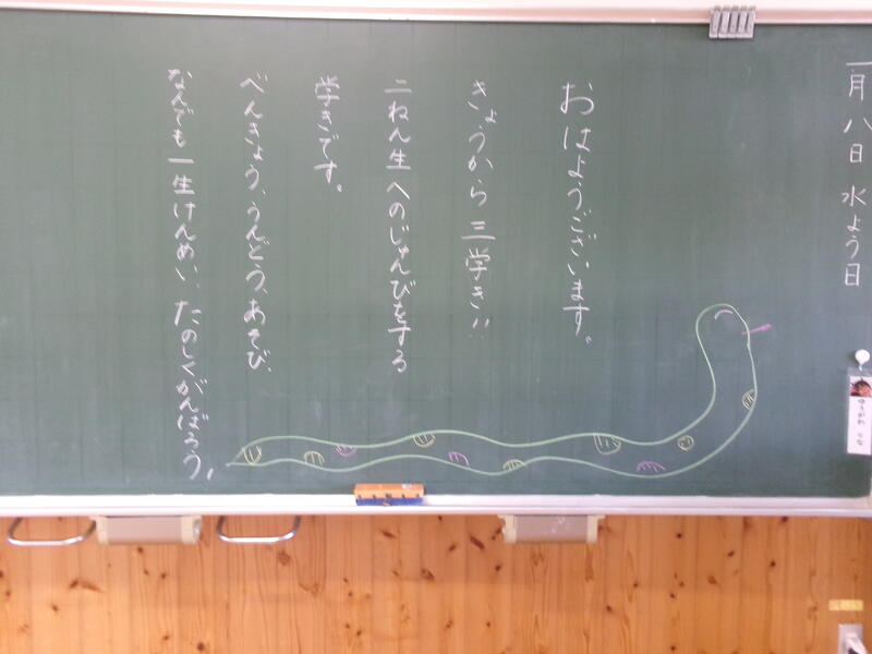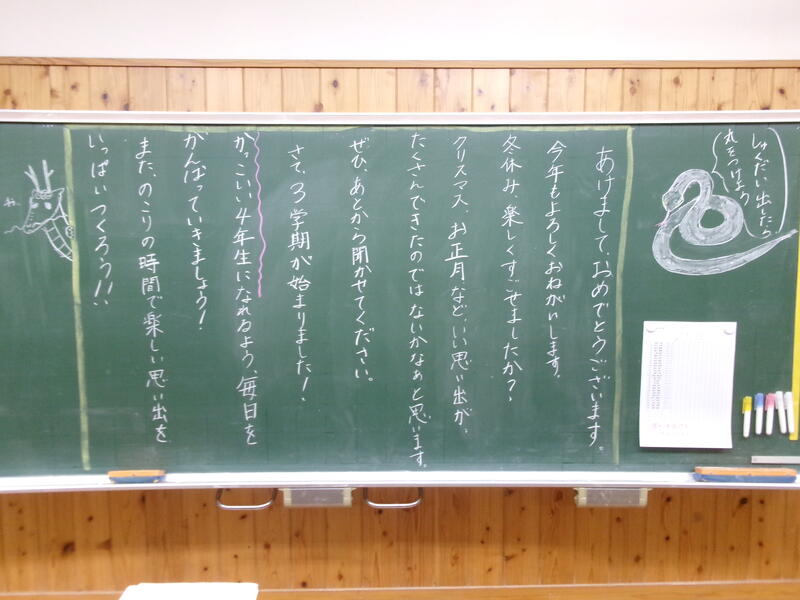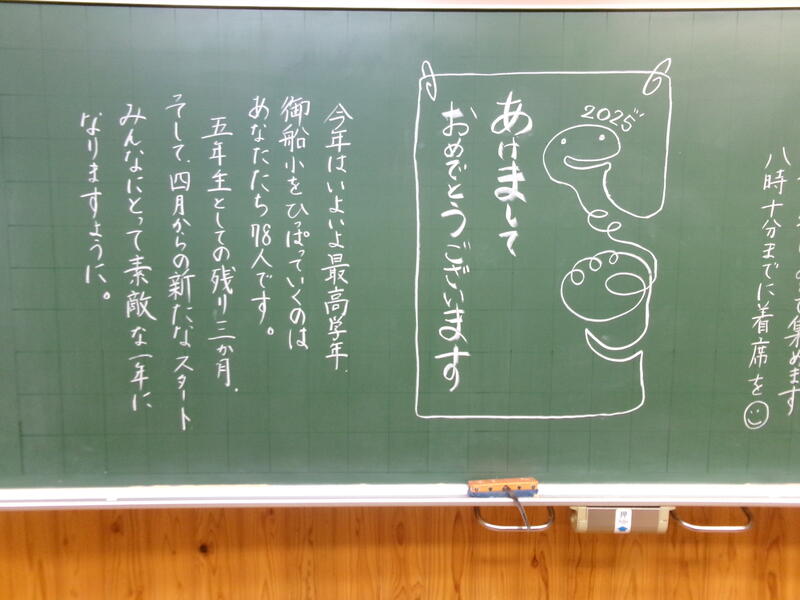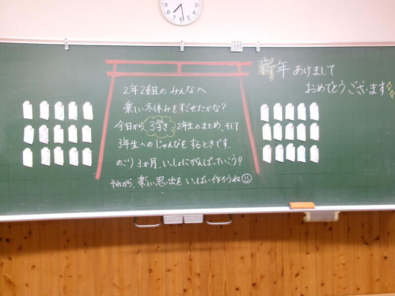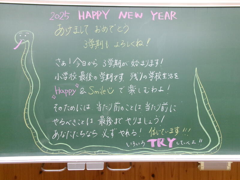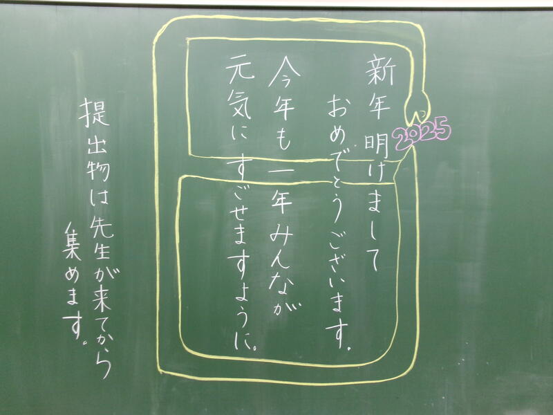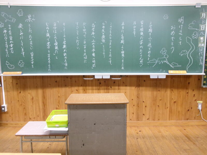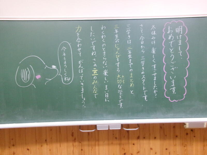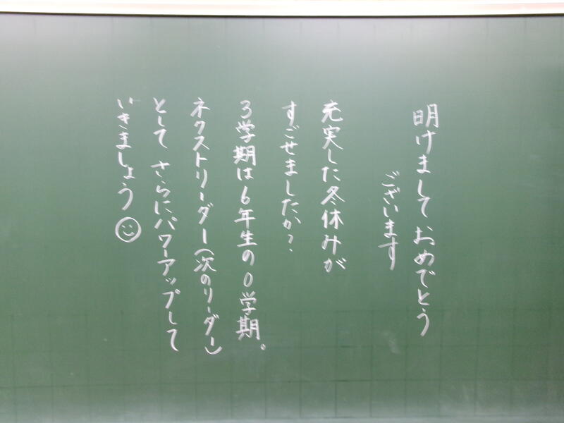 朝から冷えましたね。児童靴箱の所に立っていると、子どもたちから「おはようございます」という元気なあいさつとともに、「あけましておめでとうございます」という言葉も返ってきました。また、友だちどうし「今年もよろしくね」などの会話も聞こえてきました。学校が活気づいています。