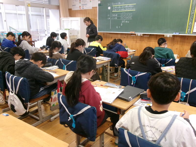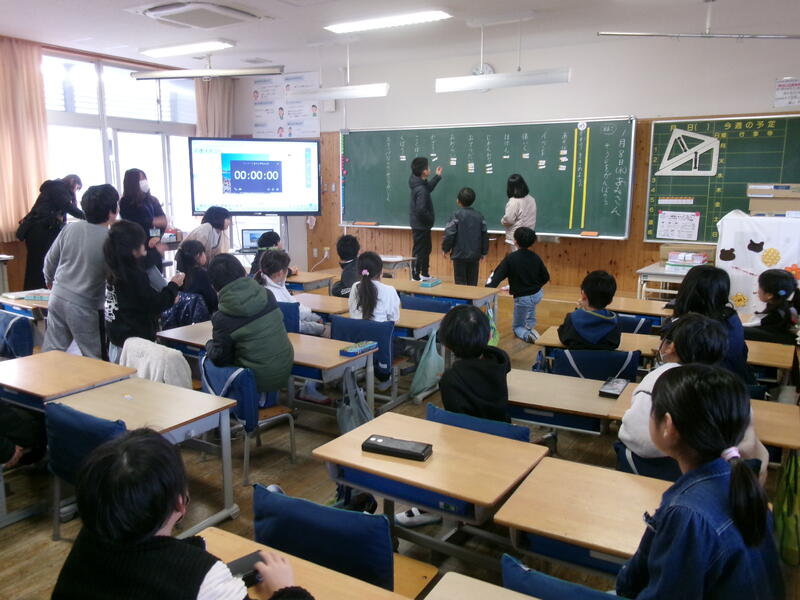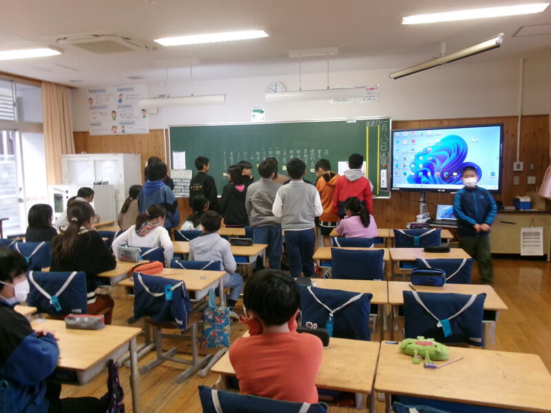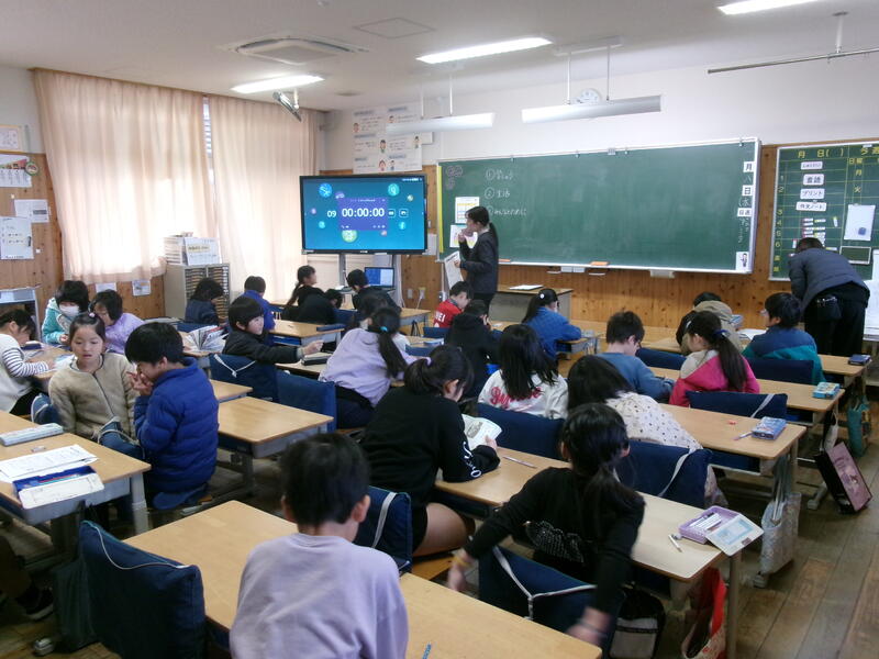 【4年2組は「国語辞典の使い方」の問題を解いていました。】