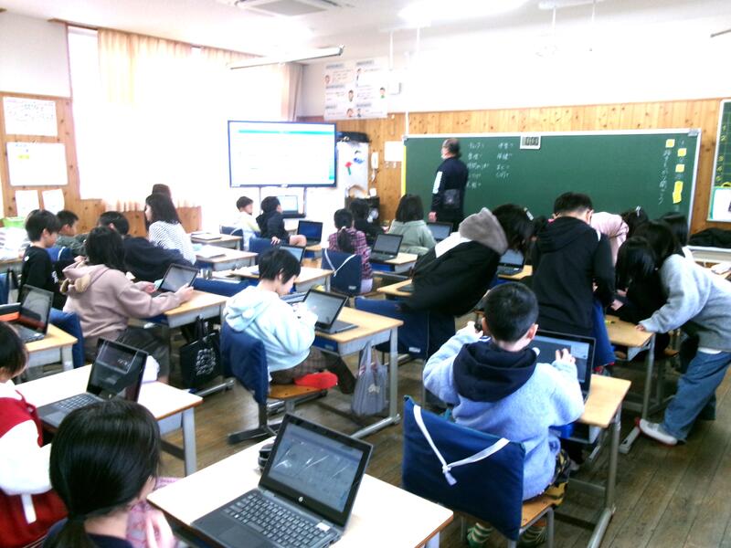 1校時目は児童集会(給食委員会)がズームをつかっておこなわれました。内容は給食に関する〇✕クイズや、給食センター職員の皆様の紹介などです。〇✕クイズでは「いただきます」には、動物や植物の命をいただくことへの感謝の気持ちがこめられている。〇か✕か。答えは〇です。こういうクイズが10問ほどおこなわれました。途中で、給食センターの方々のビデオメッセージもありました。詳しくは子どもさんにお聞きください。子どもたちからは「感謝していただきたい」、「給食を残さず食べたい」などの感想がでました。給食委員会のみなさんとてもよかったですよ。ありがとう!給食センターの皆様これからもよろしくお願いします。