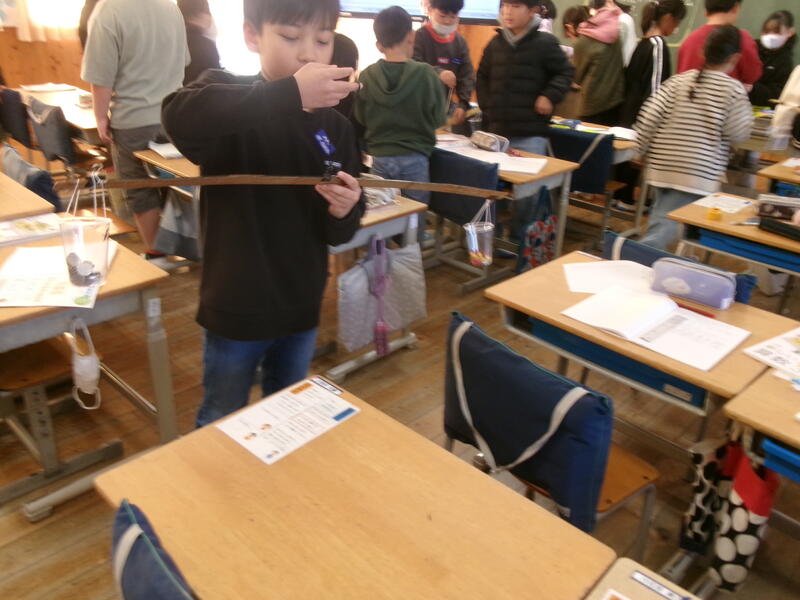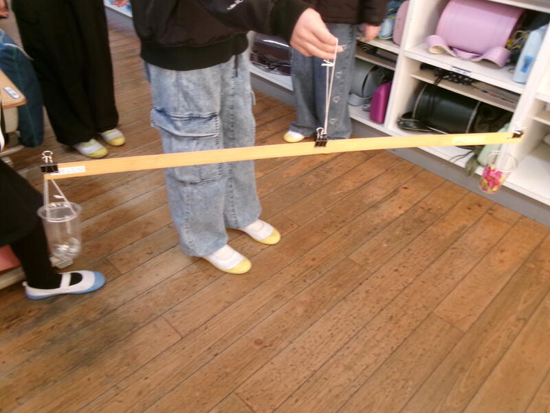 【現在、3年生の算数は重さの学習をしています。今日は自作のてんびを作り、重さくらべをしました。映像は3年2組です。】