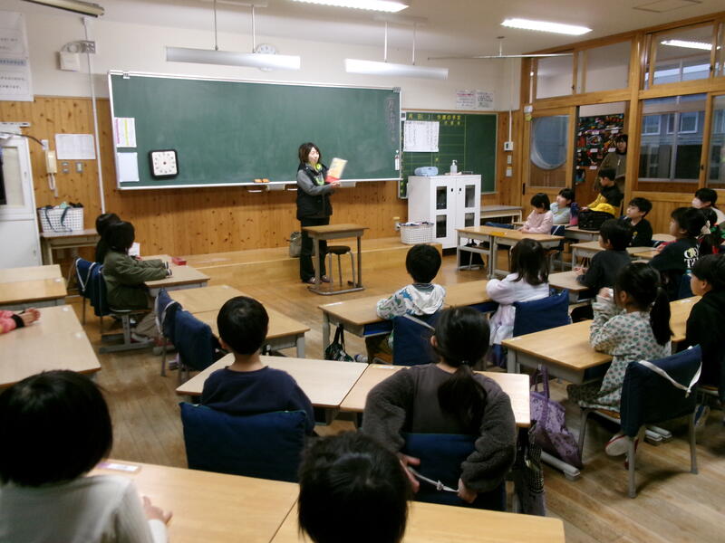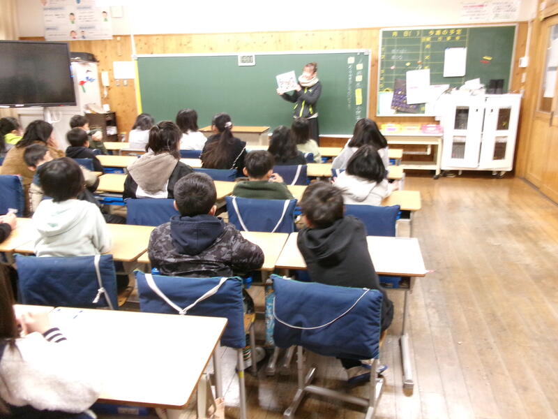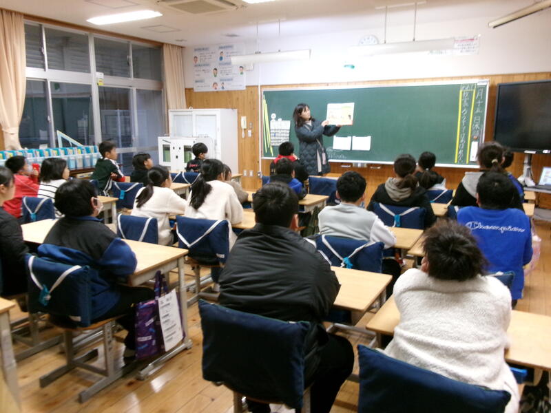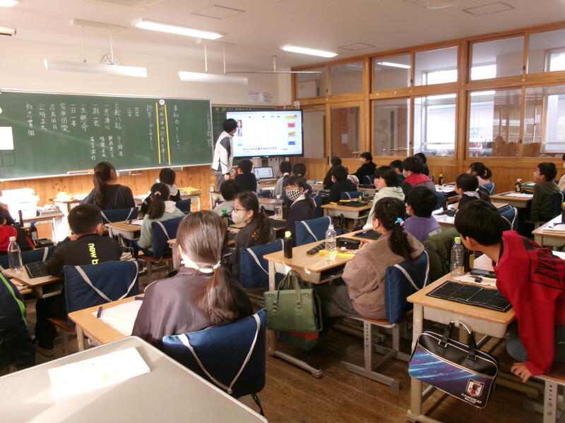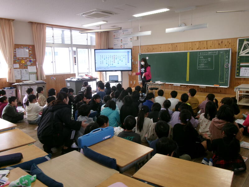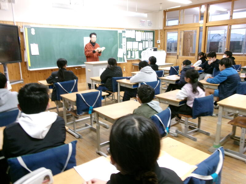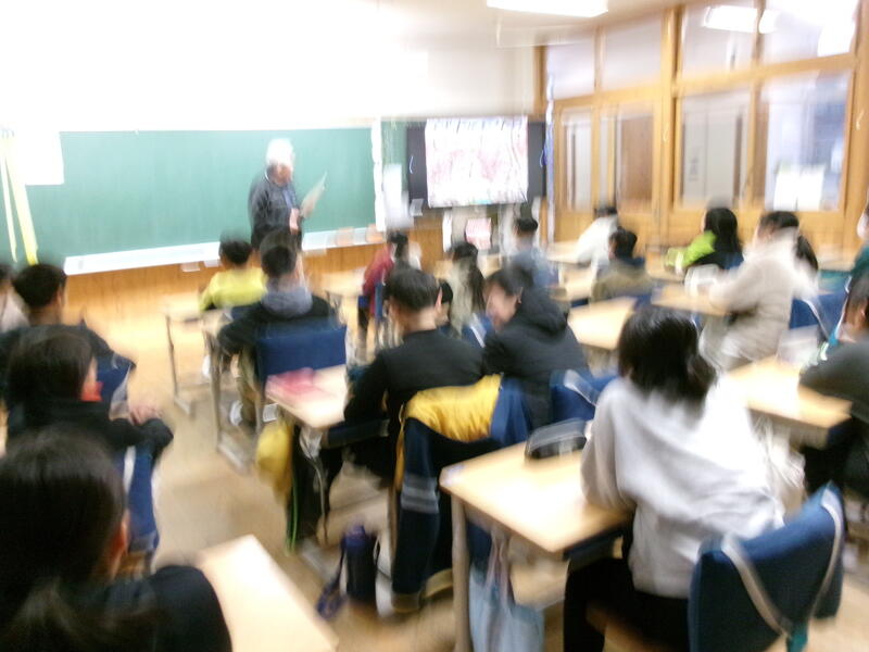 その後も、昨年の4年生から6年生のみなさんは、石川県に派遣された御船町役場の方を招いて、直接、現地のお話を聞きました。