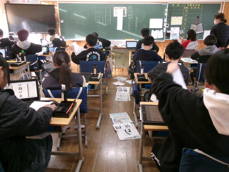 【6年1組は社会で、戦争がどのように広がっていったのかを、タブレットをつかってまとめていました。】