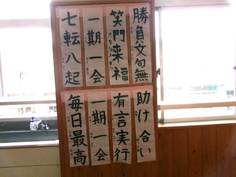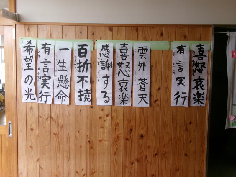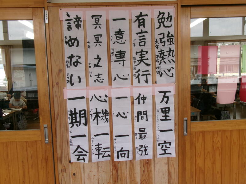 【先日6年生は書初めをしました。その作品の一部です。力強さを感じます。】