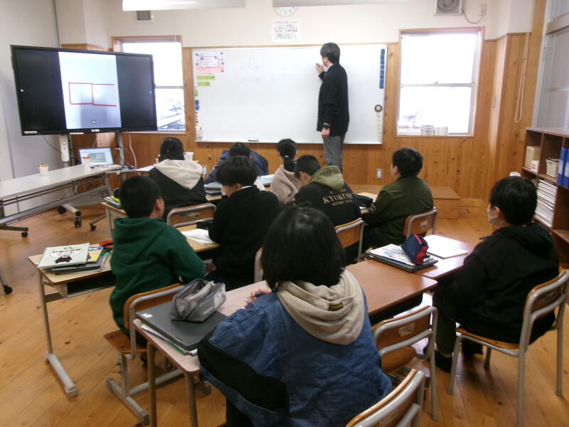 【5年生は算数で、正八角形のかき方を調べていました。映像は5年1組教室です。】
